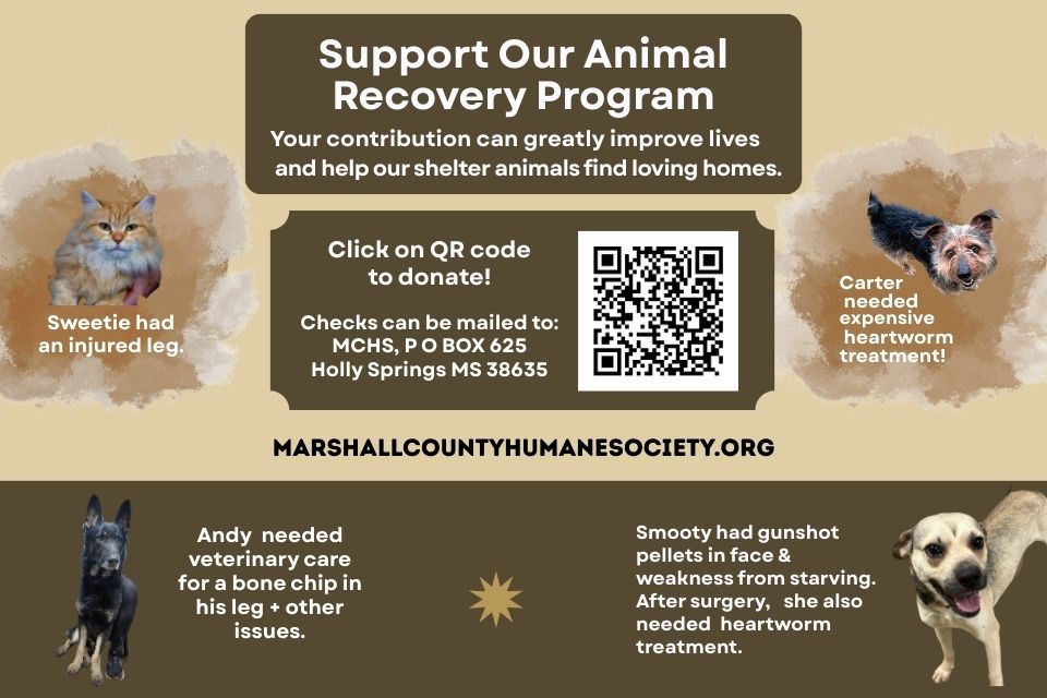 MCHS P. O. Box 625, Holly Springs MS Phone: 662-564-2900 & Leave Message Dogsncats11@gmail.com Our dogs love Kuranda beds. If you would like to donate a bed, the link is https://shelterbeds.org/ and select Marshall County Humane Society, Holly Springs MS |
